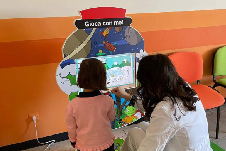 VGPlay con il Totem interattivo Ciuspy intrattiene i bambini nel reparto di immunologia e oncologia pediatrica.